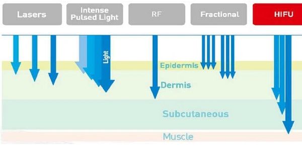 The technology of HIFU is unique in its capability to penetrate your dermis and the SMAS (superficial muscular aponeurotic system) layer, which is deeper compared to all other facial treatments that are non-invasive. The SMAS is the very layer that’s tightened during the process of conventional facelift surgery.