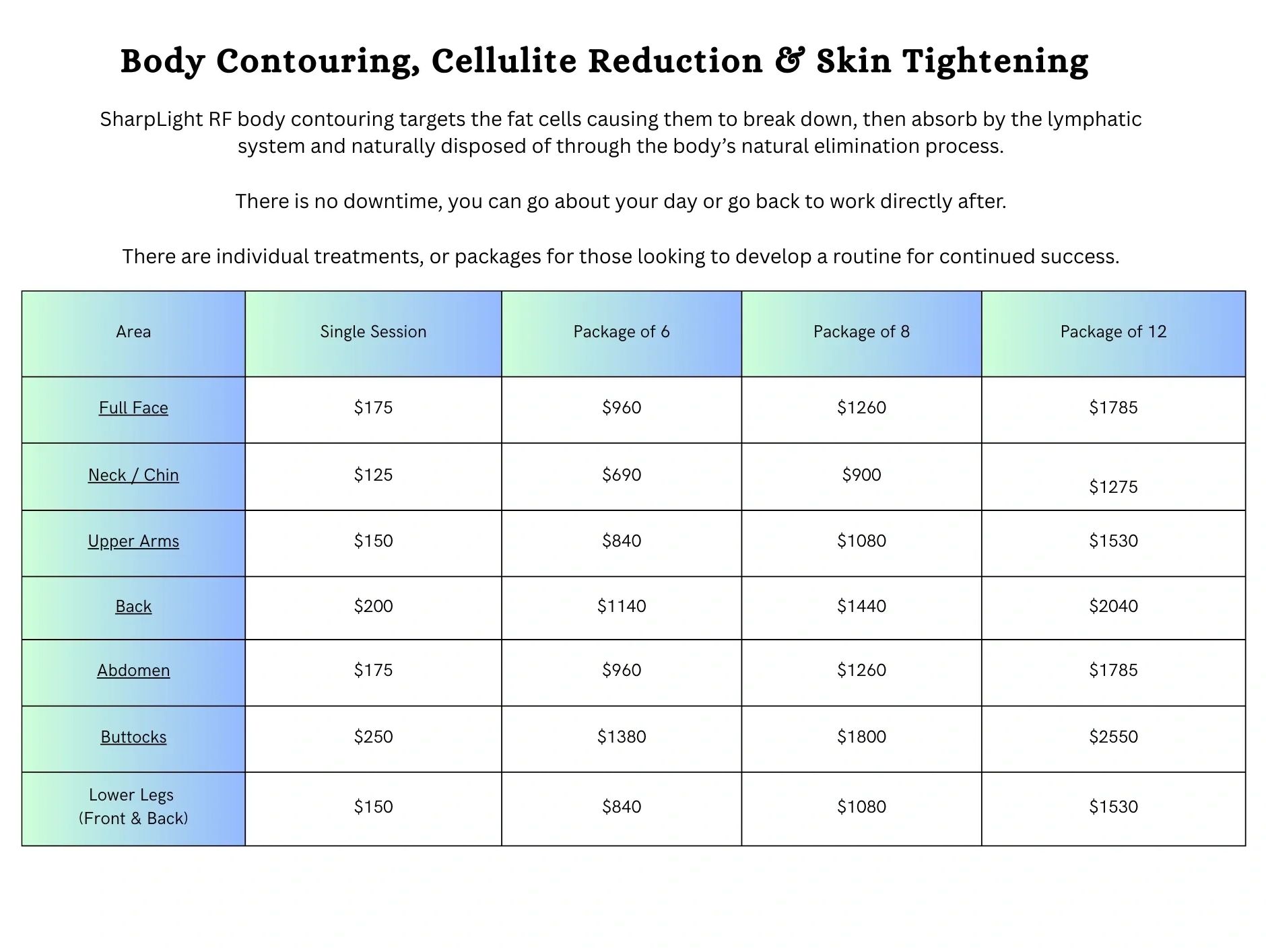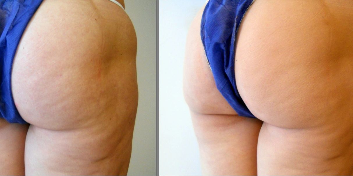 Results typically appear after about 8 - 10 weeks apart with the recommendation of treatment follow up after a year. Radio Frequency Wand that is used creates heat as it passes through the various layers of skin, melting the cellulite and sculpting towards the desired result.