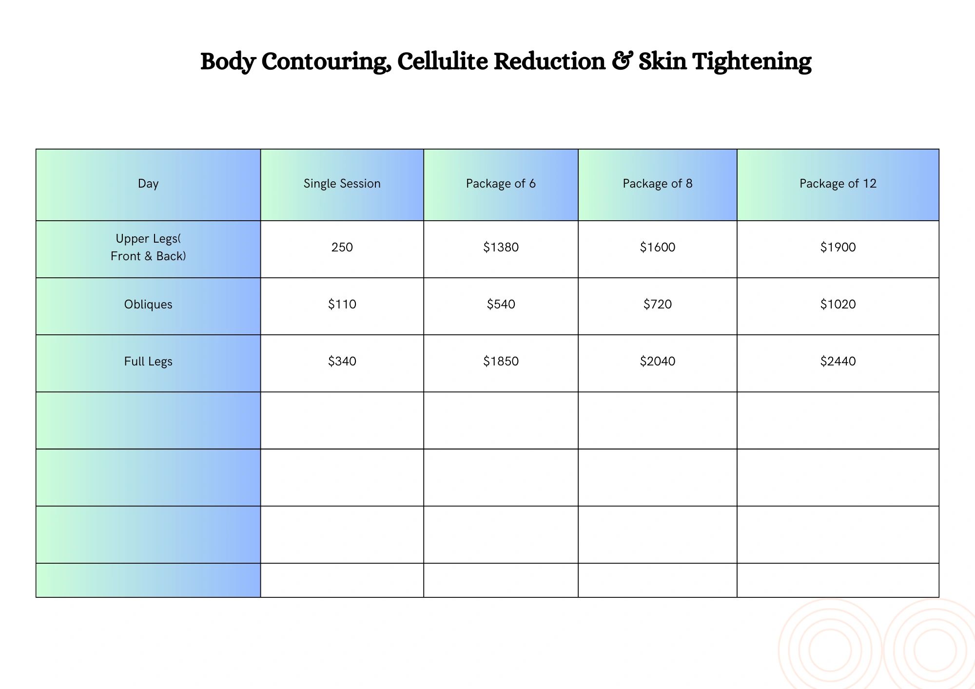 Infared Light (IR) is applied to encourage new collagen and tighten and tone the skin. Your fresh approach to body sculpting !